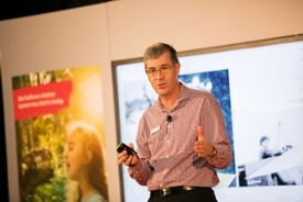 Photo: Alistair Davis, CEO of Toyota New Zealand engages employees during the 2016 Believe roadshow.