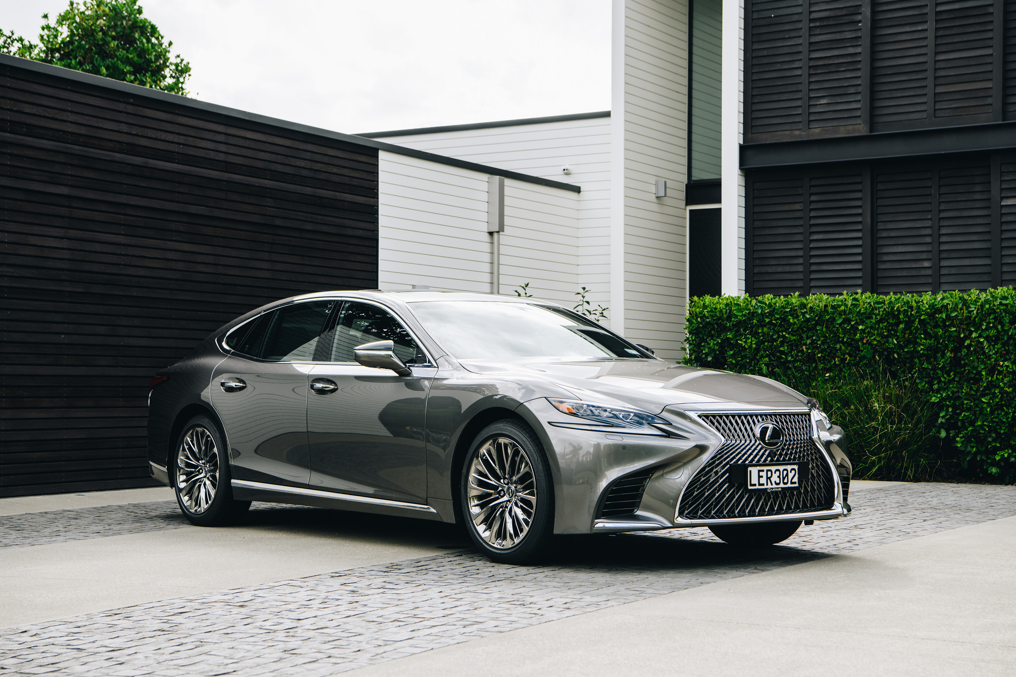 The flared fenders slant forward creating a dynamic impression. The LS sits on 20-inch diameter alloy wheels which are electroplated with a technique known as sputtering.