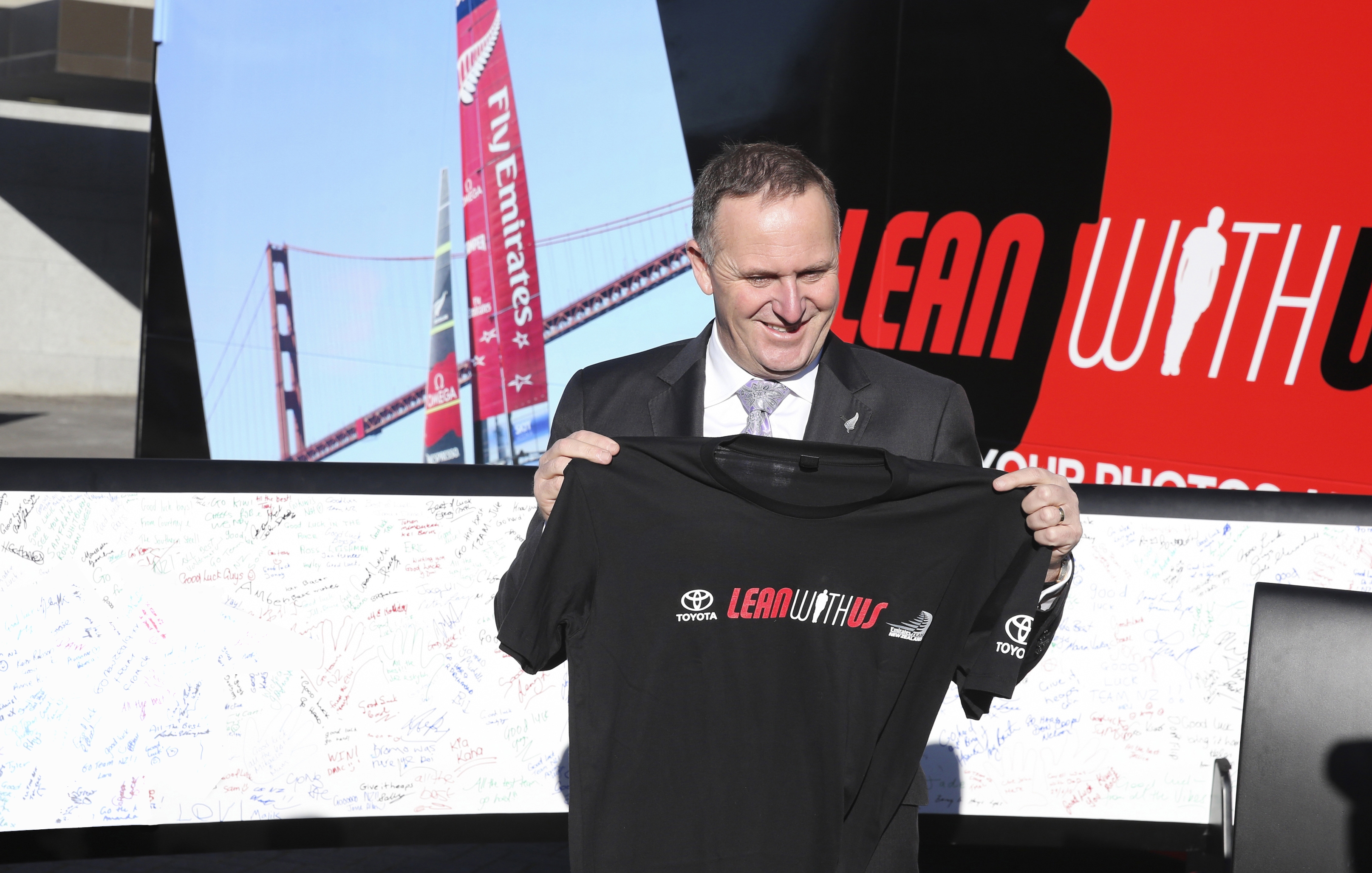 "It's great to see the Prime Minister signing the dagger boards on Toyota's 'Lean with us' tour which just illustrates again the fantastic support we have received from the Government. Without the Government's backing, we couldn't be doing what we are doing. We are in San Francisco determined to win the America's Cup and bring it home because we know it will deliver benefits to New Zealand as a whole. It's going to be tougher than ever but huge support from around the country is what will spur the guys on more than anything."